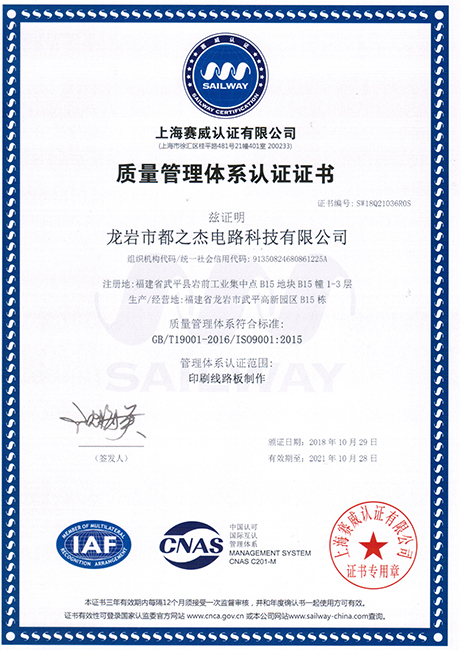 自1997年成立以來,都之杰已經(jīng)獲得ROHS產(chǎn)品認(rèn)證,各項(xiàng)技術(shù)指標(biāo)達(dá)到國(guó)家先進(jìn)水平,質(zhì)量和信譽(yù)是企業(yè)的生命,我們一直以來持續(xù)不斷改善產(chǎn)品的質(zhì)量,以質(zhì)量取勝市場(chǎng),提高公司的信譽(yù)度。多年來憑優(yōu)良的產(chǎn)品質(zhì)量、準(zhǔn)時(shí)快捷的供貨和周到細(xì)致的服務(wù),深得國(guó)內(nèi)外客戶的好評(píng)。我們已經(jīng)獲得良好的聲譽(yù)和客戶的信任,并逐漸成為客戶可信賴的、能長(zhǎng)期合作的印刷線路板戰(zhàn)略合作供應(yīng)商。我們堅(jiān)持向國(guó)內(nèi)外先進(jìn)企業(yè)學(xué)習(xí)并不斷提升自主創(chuàng)新。公司擁有經(jīng)驗(yàn)豐富及穩(wěn)定的團(tuán)隊(duì),視質(zhì)量為企業(yè)生命,嚴(yán)格推行ISO9001質(zhì)量管理體系,符合ROHS標(biāo)準(zhǔn),并獲得了UL安全認(rèn)證、TS16949和CQC認(rèn)證。